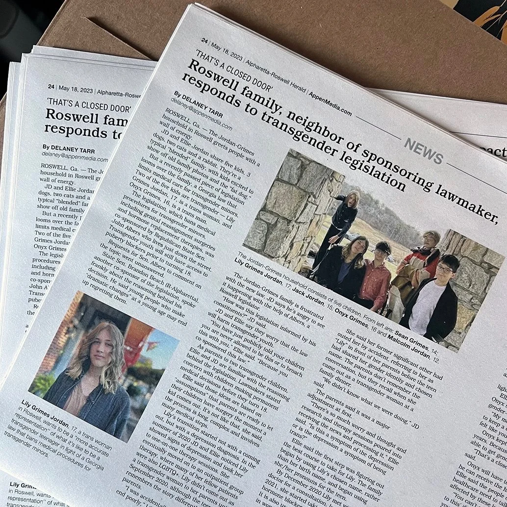 Appen media covered our family back in May when our incumbent state senator sponsored Georgia’s anti-trans bill, blocking lifesaving healthcare options critical to helping trans kids deal with depression, anxiety, eating disorders, self-harm, and suicidal thoughts.